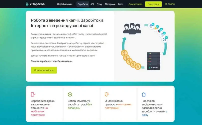 - 0,14 – 1,00 $ за 1000 розв’язаних CAPTCHA (залежить від типу та складності).